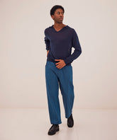 細すぎない直線的なラインが全身のバランスを整え、立ち姿を美しく演出します。さらに股上にわずかなゆとりを持たせることで、現代的なリラックス感と、窮屈さを感じさせない機能的な設計に仕上げました。